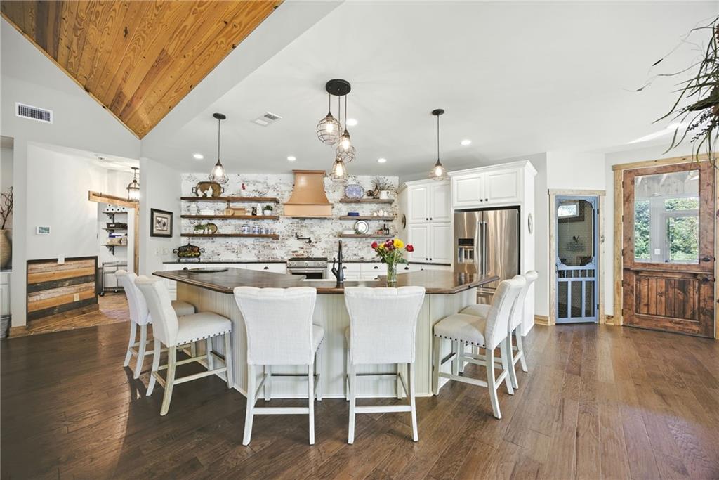 Welcome to 1620 Pond Fork Church Road, a beautifully maintained 3-bedroom and 2.5-bathroom custom-built Craftsman ranch home nestled on just over 4.86 picturesque acres in Jackson County. As you drive into the gate you are met by beautiful landscaping and a stunning home that offers the perfect blend of rustic charm and modern functionality. Featuring an open main floor layout with vaulted ceilings and a wall of windows that welcome in the sunlight. The kitchen is thoughtfully designed with stainless steel appliances, large granite countertops and stunning distressed, stained hardwood island that seamlessly overlooks the family room, creating an ideal space for gathering and entertaining. The oversized primary suite serves as a private retreat, complete with sitting area, oversized tiled shower, dual vanities, heated bathroom floors, oversized closet with custom shelving, and access to the screened in porch, a perfect spot for morning coffee. You will love the large laundry room and office space that boasts large windows overlooking beautiful landscape. With 2 additional bedrooms and one shared bathroom, this property is perfectly suited for a growing family and room to expand. Enjoy the outdoors with 2 covered porches, each providing the perfect space to unwind and take in expansive views of the breathtaking garden. From family picnics to hosting large outdoor gatherings, you won't ever want to leave. This seller is meticulous, and the home is perfectly maintained. Handicap accessible. So many extras, call the agent for more details!
