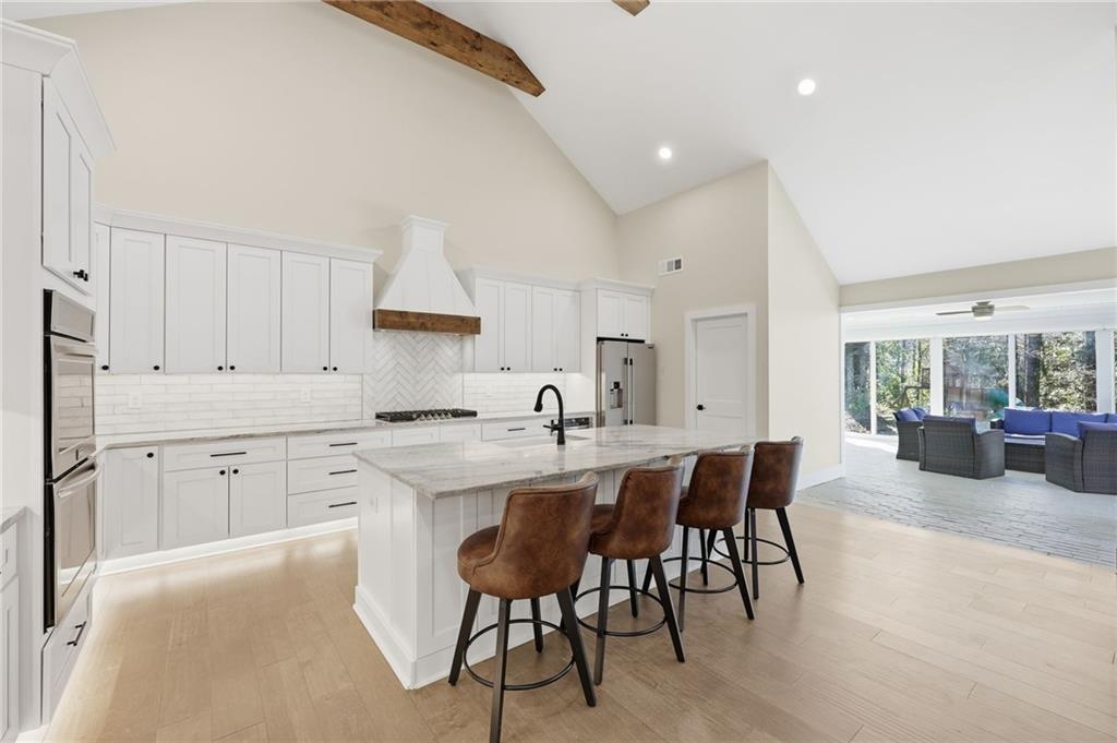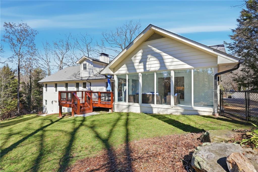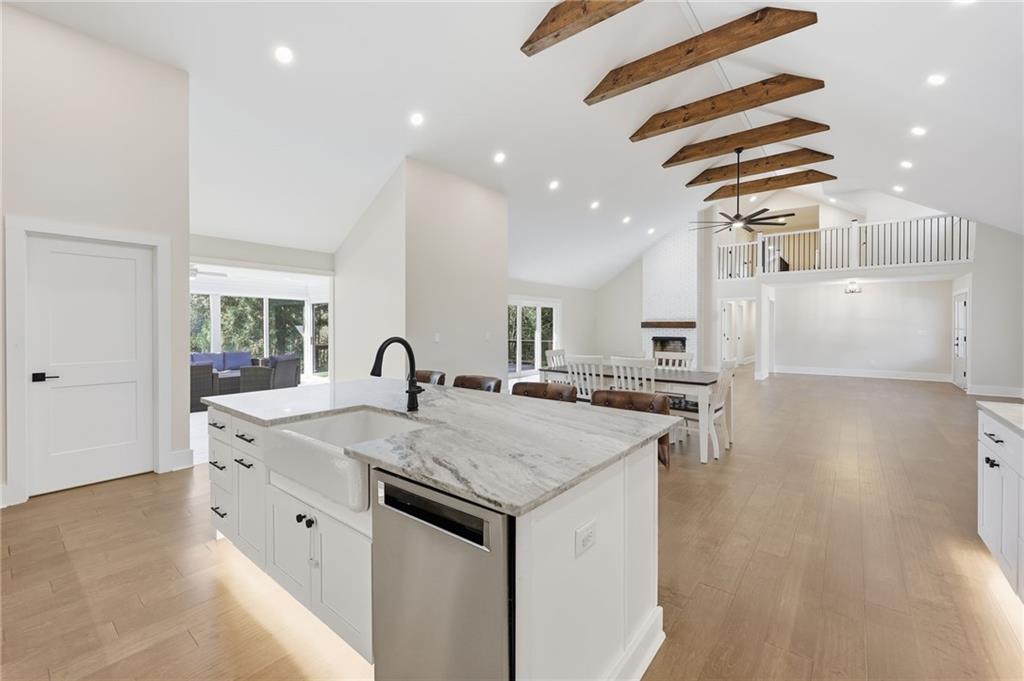 Put on your walking shoes and get ready to explore all things Gainesville within close proximity of this home! Fully renovated in 2022-2023, this Gainesville classic is ready for move-in day. The 5 bedroom, 5 full bathroom, and 2 half-bathroom home is nestled in an established neighborhood with large lots, mature trees, and plenty of privacy. The main living area features tall, vaulted ceilings with exposed beams, a fireplace, and sliding glass doors that open to a deck overlooking the beautiful backyard. The adjacent custom kitchen is outfitted with a gas range, stainless appliances, ample cabinet space, solid-surface countertops, and a large walk-in pantry. Right off the kitchen is a sunroom flooded in natural light - the perfect spot to start or end the day year around. Three bedrooms, three full bathrooms, and one half bathroom are located on the main level, including the roomy primary suite with custom walk-in closet, dual vanities, and an amazing shower. The loft area includes built-in storage and an additional bedroom and full bath, and the walk-out basement also features a bedroom with full bath, as well as another half bath and a den. This home equally offers plenty of room for gathering together and spreading out, both inside and out. Schedule a tour to see for yourself today!