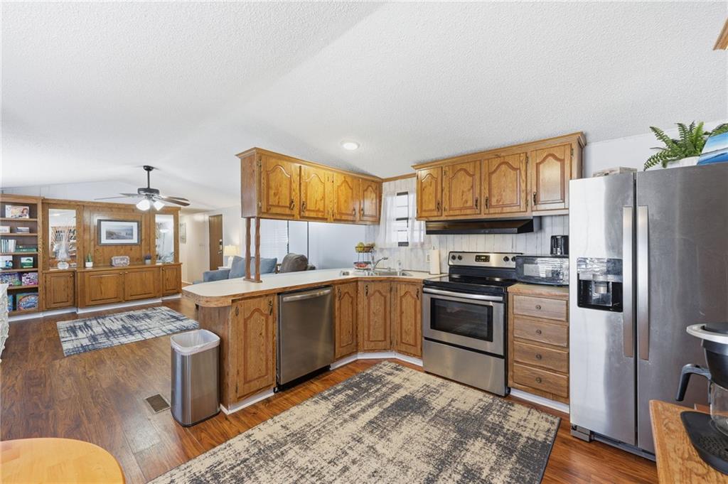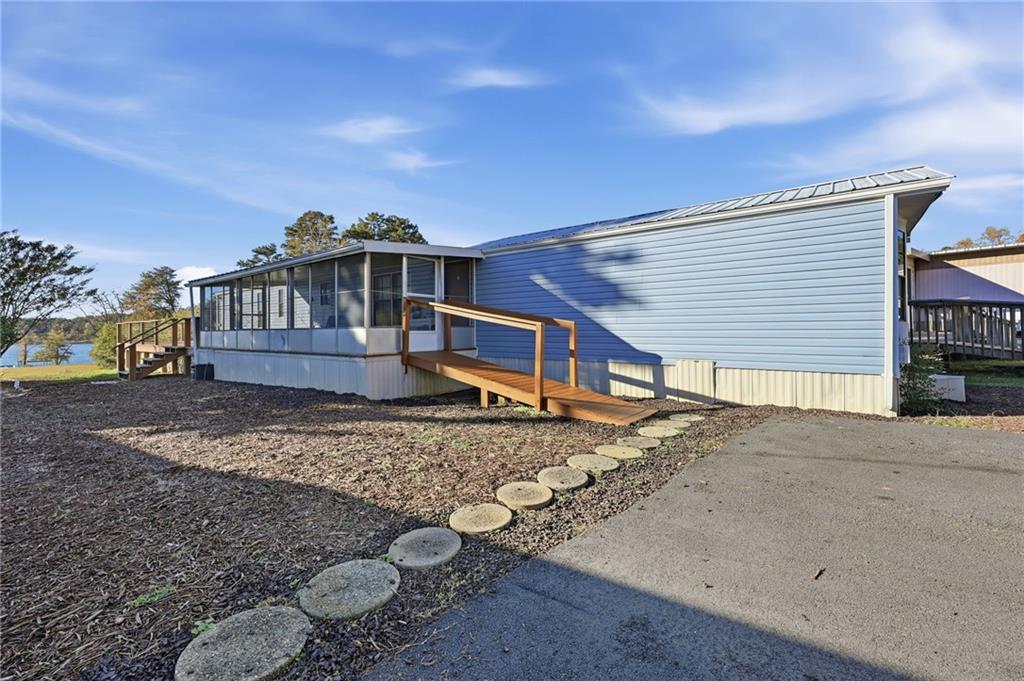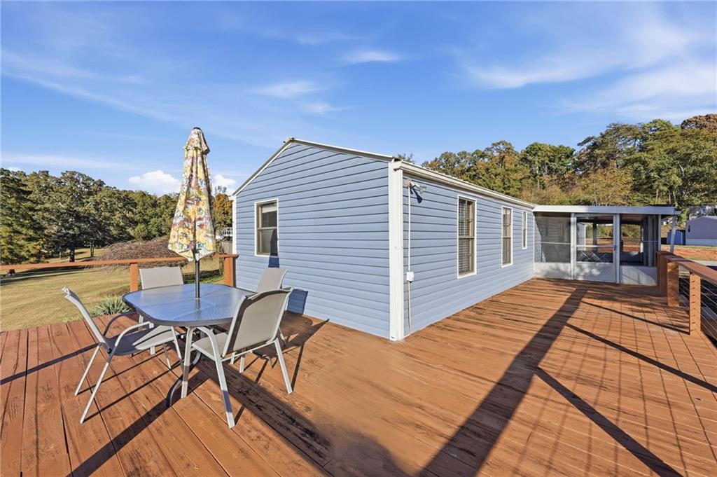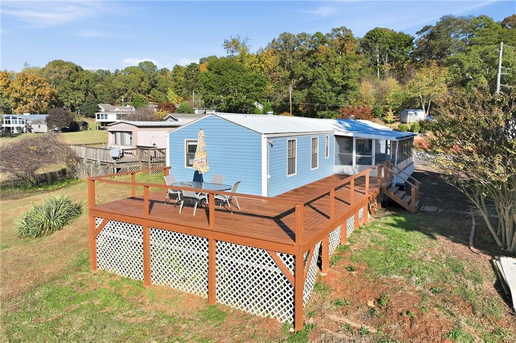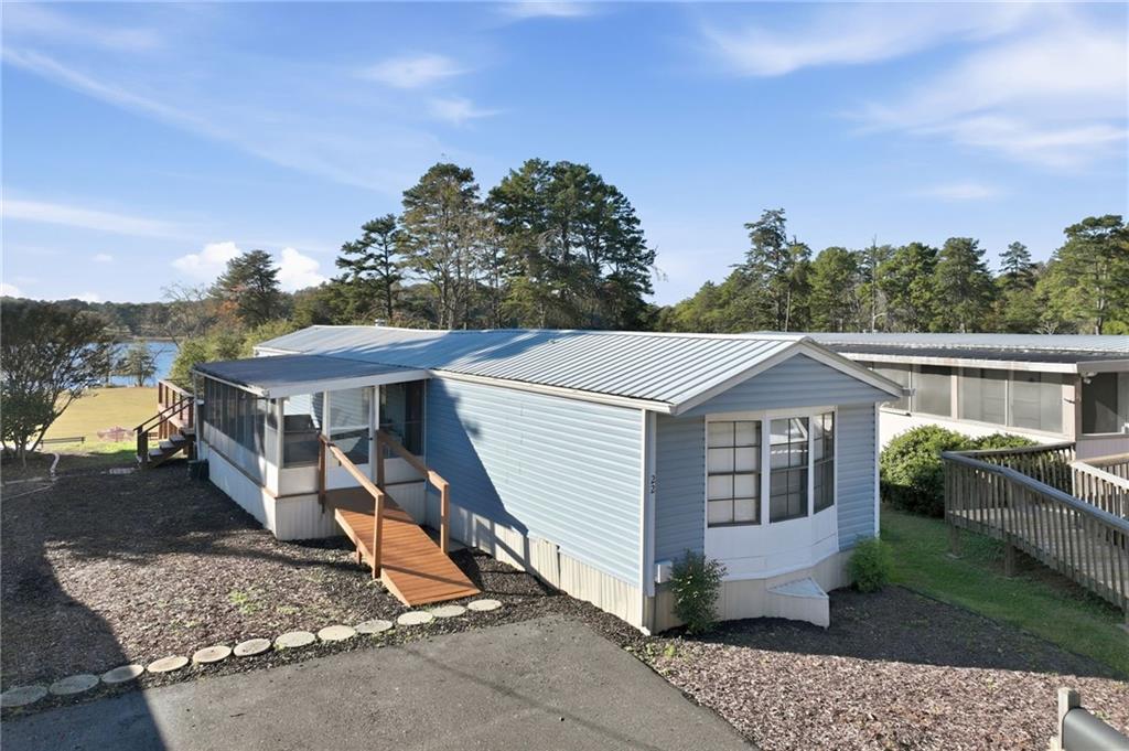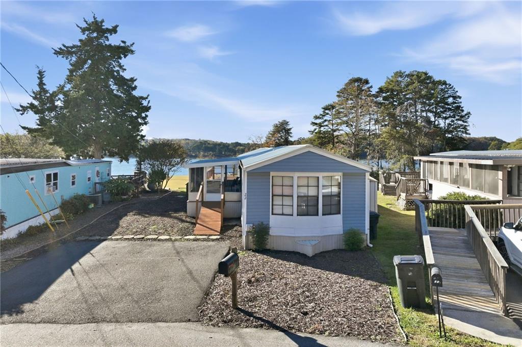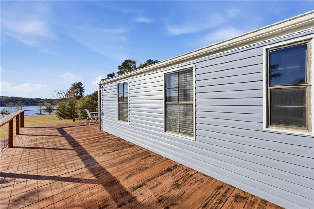 Your peaceful lake escape awaits. This cozy mobile home offers comfort, convenience, and charm--all just minutes from Lake Lanier, local shopping, dining, and North Hall schools. Step inside to find an inviting open floor plan with a spacious living area, a bright kitchen with plenty of cabinet space, and comfortable bedrooms with ample storage. The home features updated flooring and fresh paint, making it move-in ready. Outside, enjoy a new wrap around deck with room for outdoor seating, gardening, or simply relaxing in the quiet surroundings. New vinyl siding installed in 2023, as well as all plumbing replaced 9/25.
