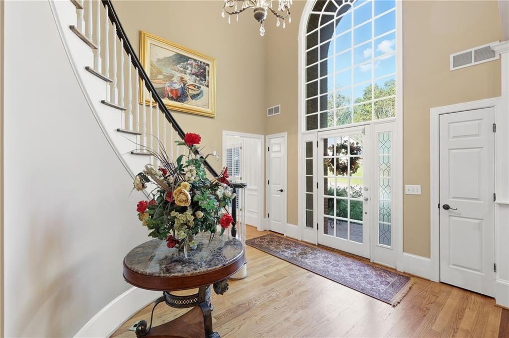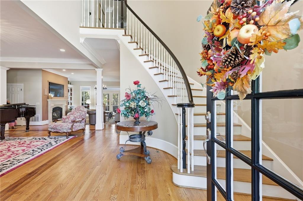 Step inside to a grand two-story foyer that welcomes you into beautifully designed living spaces. The home features multiple staircases, custom built-ins, hardwood floors throughout, and a formal dining room perfect for gatherings. The newly updated kitchen boasts all-new appliances, while renovated bathrooms and thoughtful upgrades enhance every corner.