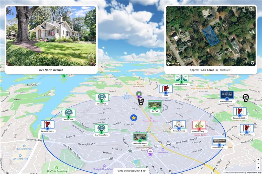 This 1930's Brick Cottage offers historic charm and all the modern necessities. With 3 bedrooms, 3 bathrooms, an office, and a covered porch, this adorable house provides plenty of space inside and out. Original features, such as hardwood floors, and fireplaces, are paired with modern light fixtures and an updated kitchen. The home boasts a spacious primary suite with an updated bathroom and walk-in closets, a large secondary bedroom with an ensuite bathroom. The large, level backyard is perfect for entertaining family and friends or future expansion. Located in the heart of Gainesville's Historic District, this home is a short walk to multiple shops and restaurants and just steps away from several local parks.