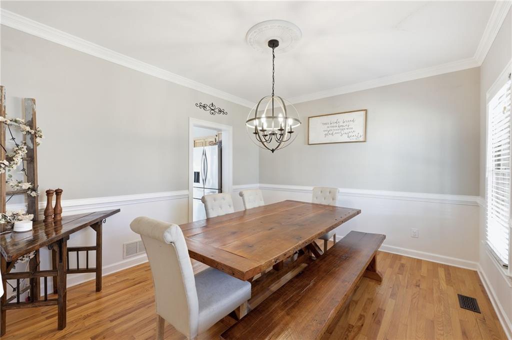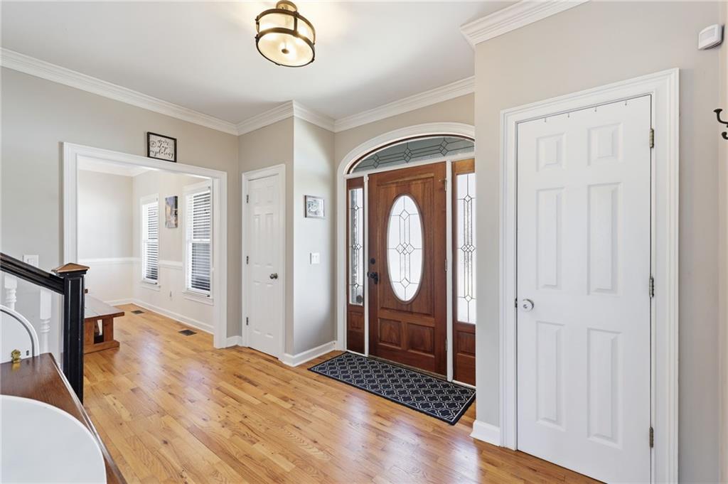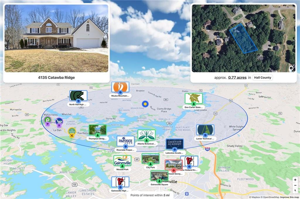 This 4 bedroom, 2.5 bathroom home in North Hall is an ideal family home! Located in a quiet neighborhood with no through traffic, its perfect blend of comfort and convenience in a peaceful, close-knit community is a rare find. The main level has an easy flow between rooms, and includes a formal dining room, sitting room, and kitchen that opens to the living area, as well as the laundry room and a half bath. All three bedrooms are located upstairs, and the primary suite has an adjoining bonus room that is ideal for use as a home office for remote or hybrid work. There is ample storage throughout the home, and the unfinished basement offers space for a home gym or workshop, or can easily be finished, as bathroom plumbing is already in place. The lovely setting with tree foliage that changes with the seasons, a small creek, and frequent deer sightings provides a lovely backdrop for such a wonderful home.