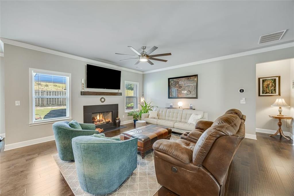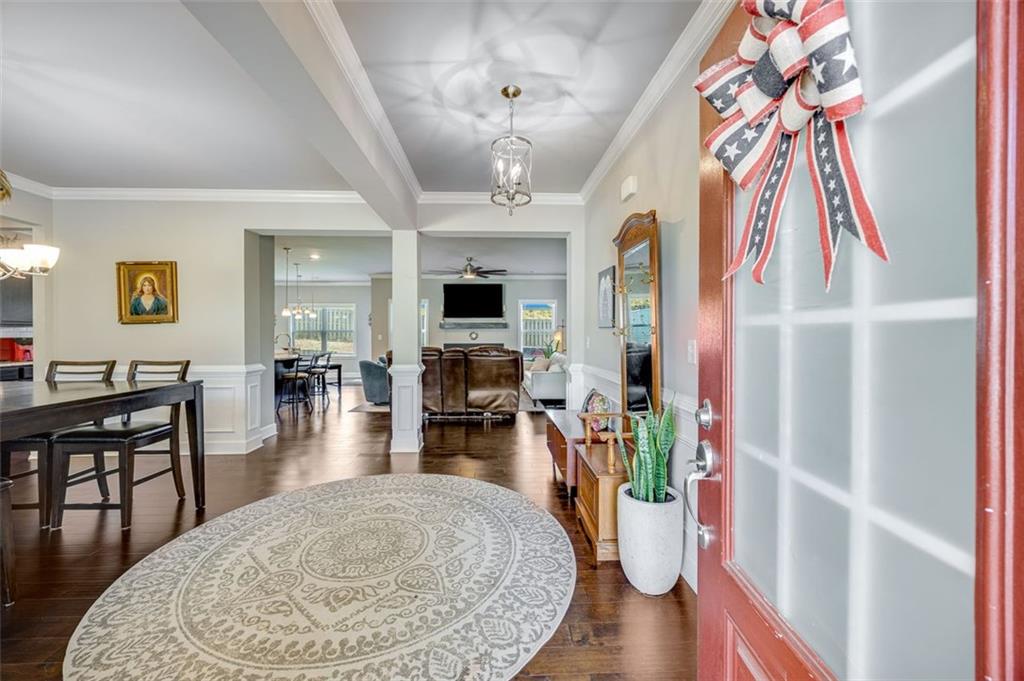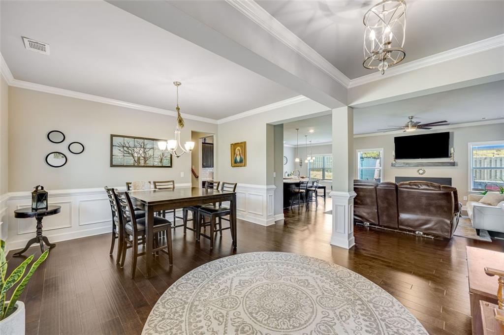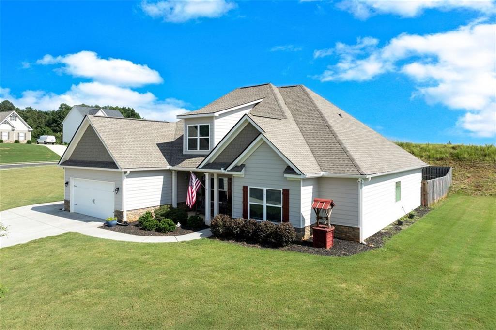 PRICE IMPROVED! Impressive corner lot home in Highland Gates community of North Hall offering everything you need in this spacious open floor plan (The Ferdinand) on a generous level half-acre with five bedrooms and four bathrooms designed for comfortable living with a covered front porch, foyer, formal dining room open to your kitchen, and family room. Massive kitchen area with breakfast area and large island, granite countertops, stainless appliances and tons of storage.