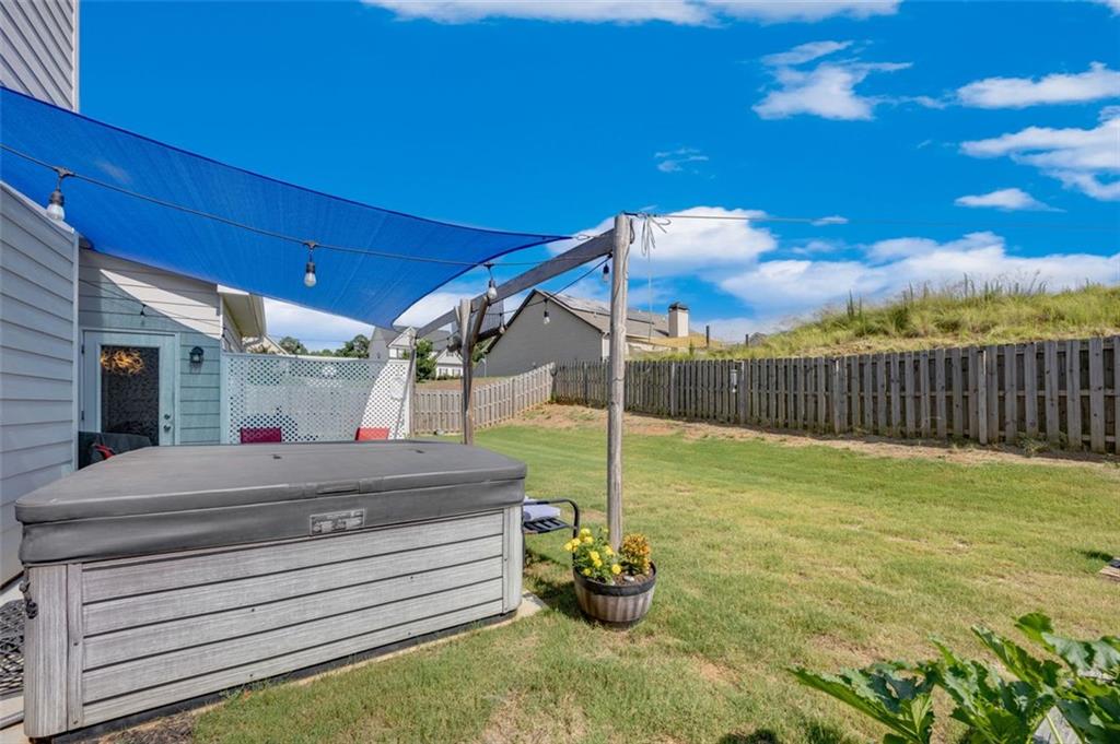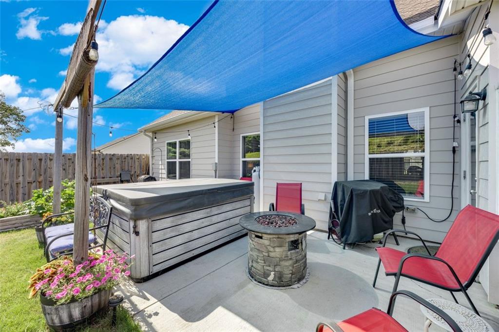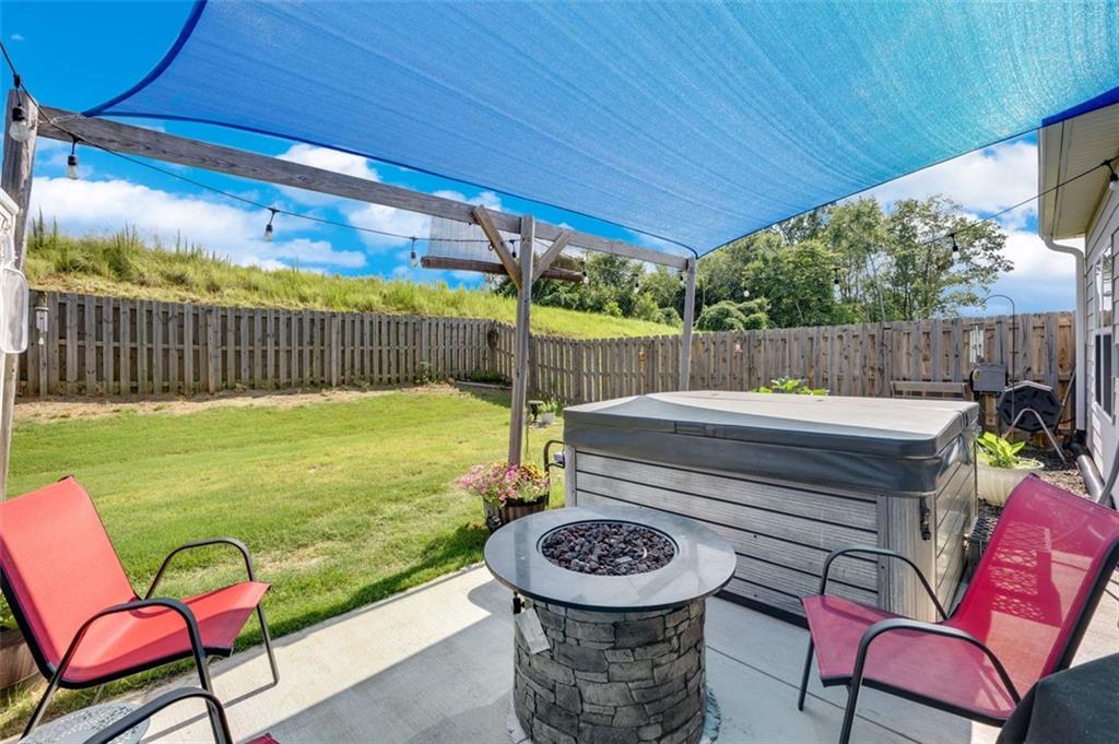 Outdoor amenities include a fenced-in yard with a patio, hot tub, and a raised garden bed. The home is also equipped with Ring cameras. Additional parking space added to driveway.