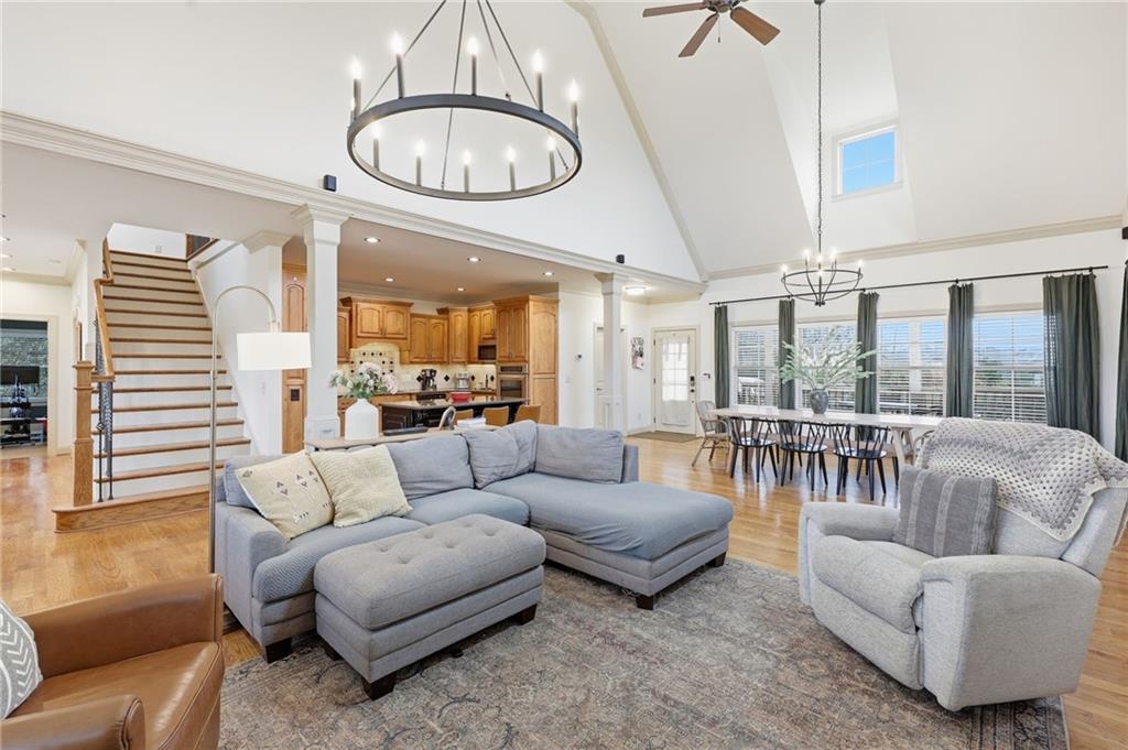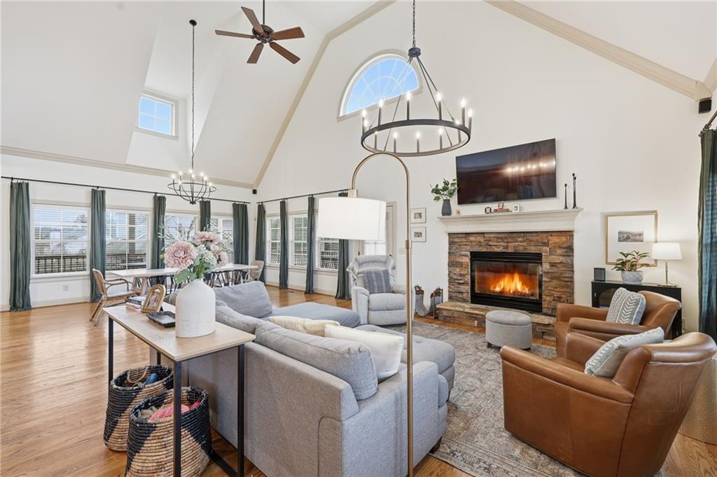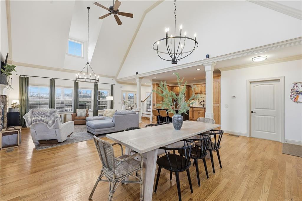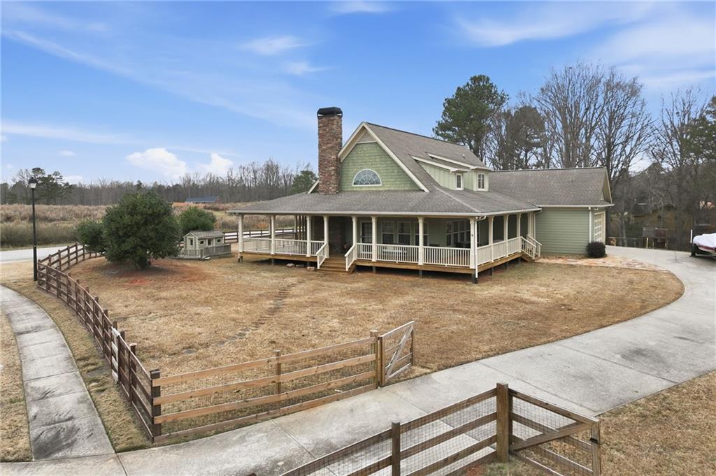 The living is easy in this welcoming home in peaceful Murrayville. An inviting wrap-around porch greets you as you step inside to an open, airy floorplan designed for everyday living. The main-level living area provides a seamless flow from the kitchen and eating area to the den with a vaulted ceiling and wood-burning fireplace. Also on the main level is the spacious primary suite featuring a private bathroom and generous closet space. Two additional bedrooms and a bathroom are upstairs, as well as versatile, cozy nooks that could be used for reading or for a home office. Recent upgrades include fresh paint, updated plumbing, and new duct work in the crawlspace. The large, fully fenced-in yard is ideal for gardening or play, or simply for enjoying the peace and quiet of North Georgia living. With a comfortable layout and serene outdoor living, this property delivers a true sense of home. An added bonus is the public boat ramp is located just a few miles away and with no neighborhood HOA, a boat can be parked in the driveway, making it easy to enjoy the North end of Lake Lanier.