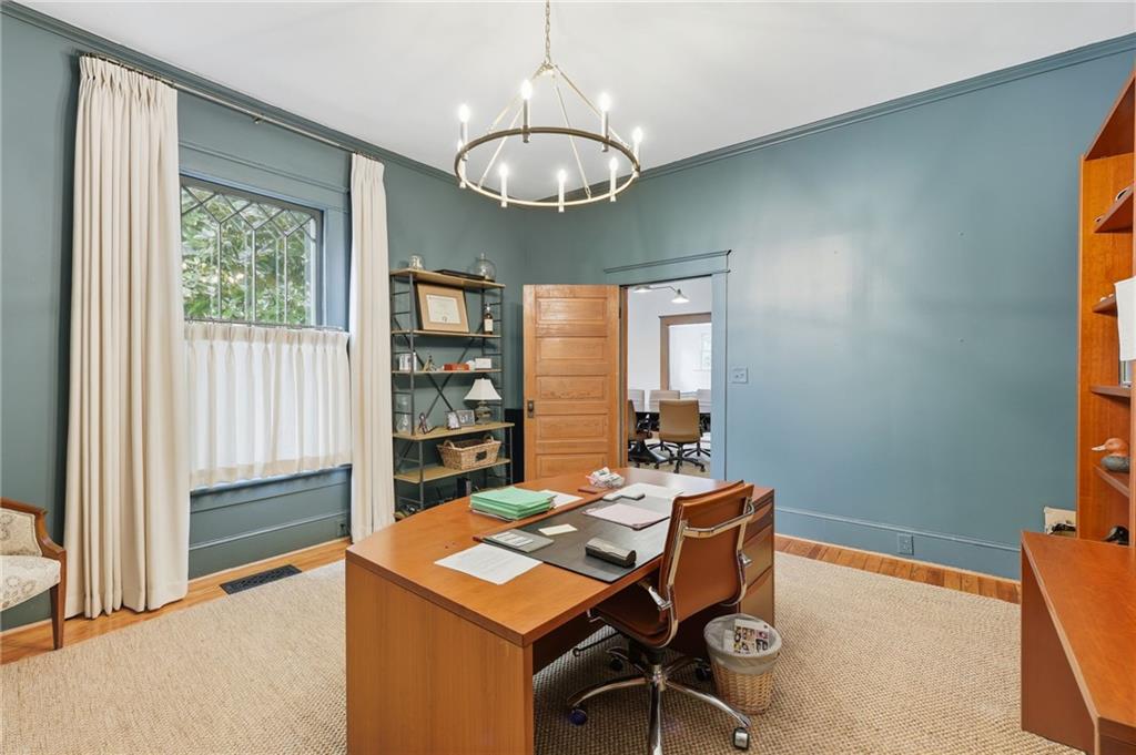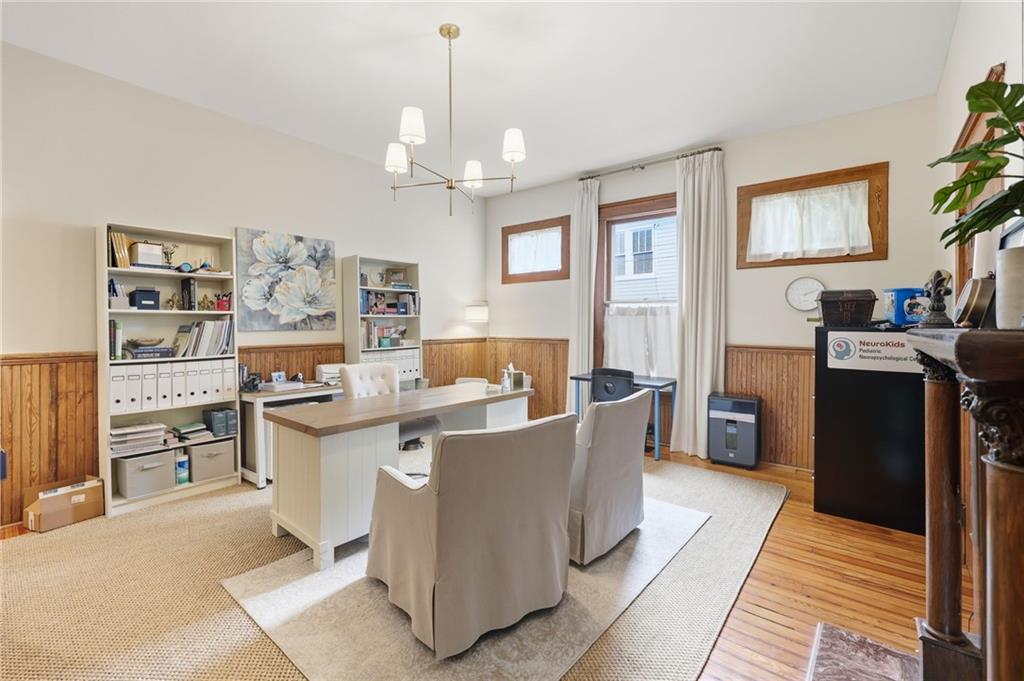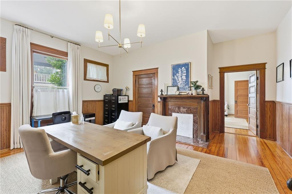 Who doesn't dream of owning a cottage close to the square? This charming gem offers historic finishes with modern touches. Inside you will find stunning, refinished original pine floors, tall ceilings and fine detailed millwork. Multiple fireplaces add warmth in both functionality and appeal, a generous master bedroom with an enormous walk-in closet and private bath is a welcome retreat, and a large kitchen opens to a cozy porch, perfect for morning coffee or afternoon naps. Upstairs are three additional bedrooms with a large hall bath and additional storage. Whether you are looking for a residence, investment opportunity or commercial office space, the location is within walking and golf cart distance to downtown shopping and restaurants.