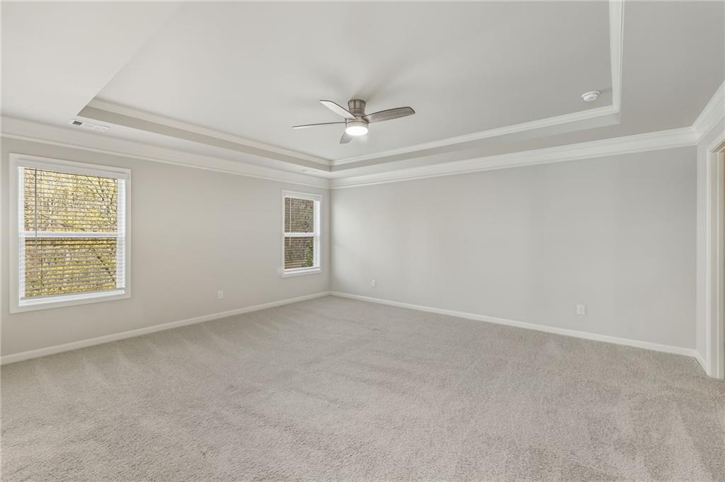 Move-in ready rental in the Hillcrest section of Sterling on the Lake! This pristine home features an open kitchen with granite island, stainless appliances, gas stove, and a clear view into the spacious family room with fireplace. Separate dining room with coffered ceiling and wainscoting. Main level also includes a half bath and 2-car garage. Upstairs offers an oversized primary suite with walk-in closet, double vanity, soaking tub, and separate shower, plus a large loft/flex space, two additional bedrooms, full bath, and convenient upstairs laundry. Enjoy the private backyard with covered pergola. Lawn maintenance is included in the rental price. Resort-style community amenities include pools, clubhouse, lake, tennis, trails, library, and more. Available now!