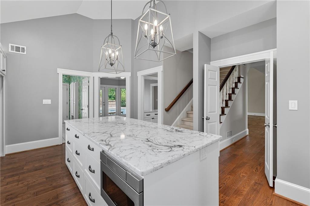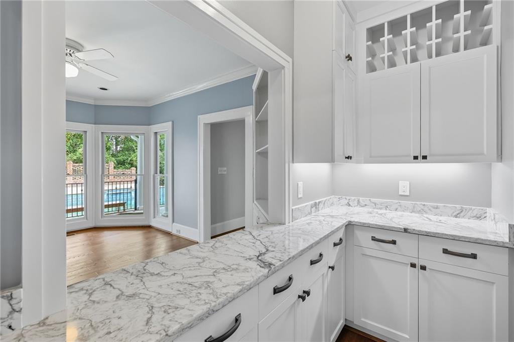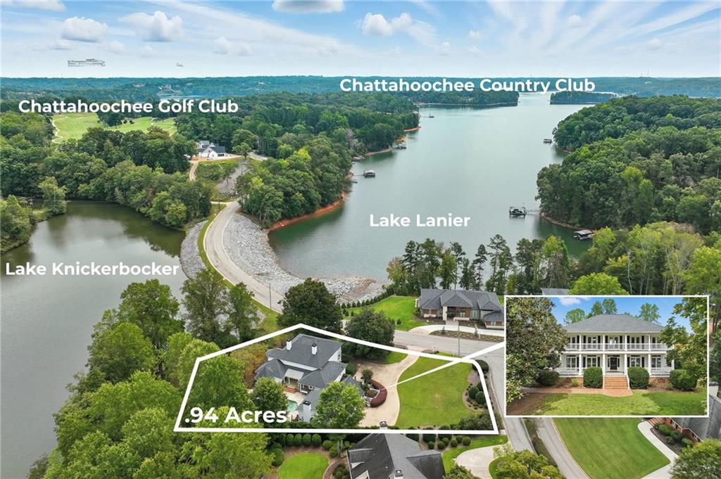 This location can't be beat- a beautiful corner lot with lake views from both Lanier and Knickerbocker! This home offers expansive living space with generous storage and space to truly unwind. A great house for entertaining including a large family room and dining room, study/office, breakfast room and walk in pantry. Beautifully renovated kitchen and butlers pantry by Tracy Tesmer in 2022. Other upgrades include: New Hardiplank siding 2019, New Roof 2019, Whole house generator 2021, HVAC replaced in 2017 (downstairs) and in 2022 (upstairs with zone unit added), New Hardwood floors on main level 2022 and more! Master on main offers fireplace, his/hers closets, a sewing room and spacious bathroom. Upstairs offers 3 generous bedrooms, 2 full baths, a reading nook/loft and a walk up attic. The garage apartment adds one more bedroom and full bath. There is also a pool house with a rec room and full bath. A true retreat offering countless ways to unwind- from poolside lounging to soaking up the lake views!