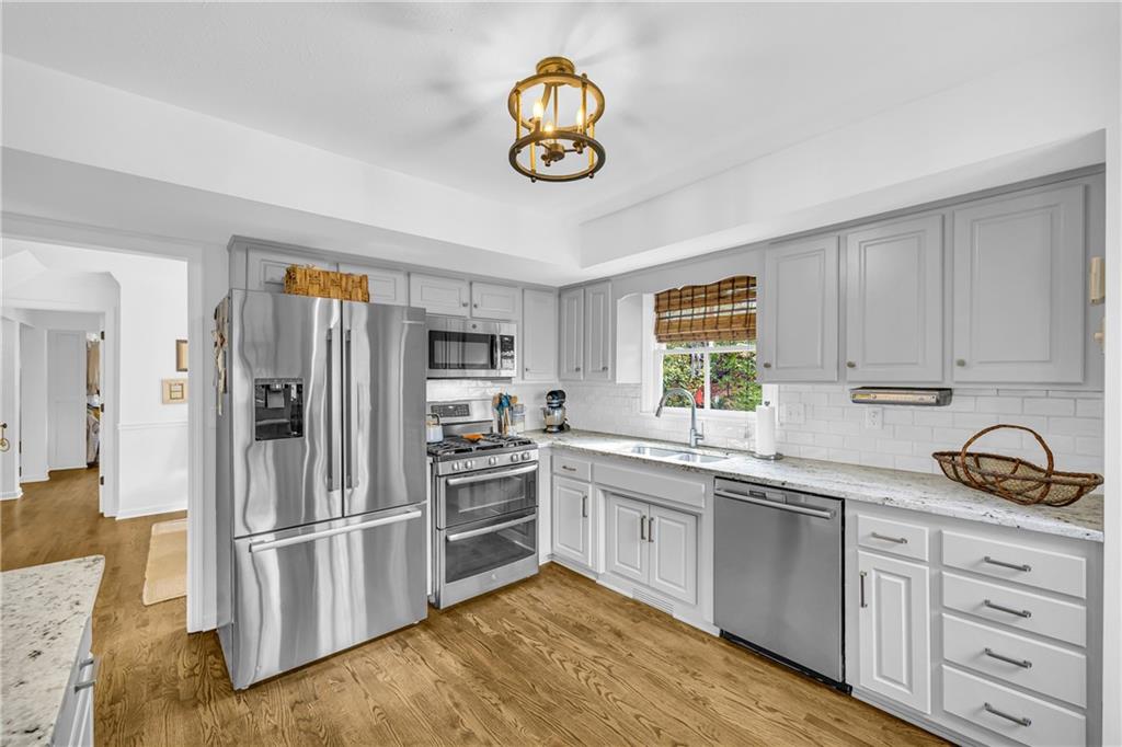 Located in highly sought after, Longstreet Hills, this well-built home was designed for entertaining family and friends. Fully renovated and ready to welcome new owners, the main level offers a charming kitchen with stainless steel appliances, a family room with fireplace, dining room, a powder room and a primary suite with a dreamy walk-in closet with custom shelving, washing machine and dryer. Upstairs, you'll find 2 large bedrooms and 2 full baths. The finished basement is perfect for hosting guests. Large family room with fireplace, a kitchenette, custom built murphy bed, 1/2 bath and workshop. Backyard is the perfect playground for neighborhood friends! Super convenient to downtown and hospital. Walking distance to City Park, along the Trolley stop route and just minutes from Gainesville's best dining, shopping, and schools. Call Beverly to schedule your private showing.